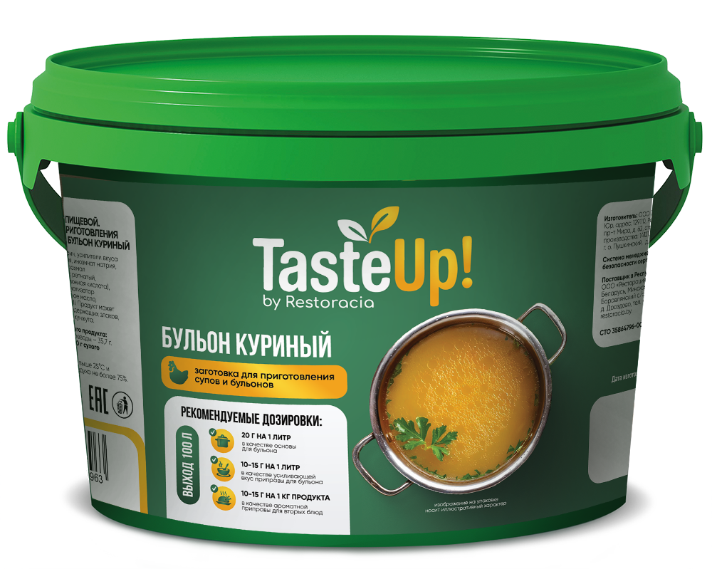 Куриный бульон TasteUp! – незаменимый ингредиент для супов и прекрасное дополнение к основным блюдам. Он привнесет яркий, чистый вкус настоящего куриного бульона.