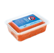 Икра масаго — это икра мойвы, замороженная. Имеет мелкозернистую структуру, яркий цвет и нежный вкус. Икринки у масаго более мелкие и нежные на вкус, чем у тобико.