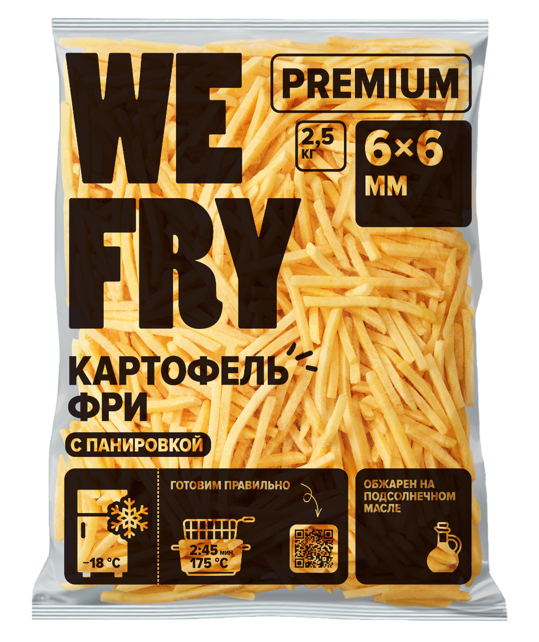 We Fry Картофель фри с панировкой 6x6 мм (S02) Premium We Fry, 2,5 кг