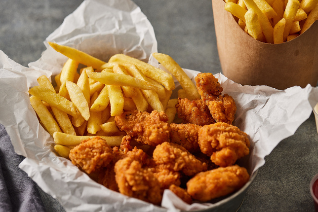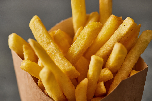 Классическая ровная соломка We Fry с аппетитной золотистой корочкой. Этот продукт в фирменной панировке остаётся горячим и хрустящим дольше, чем обычно. Идеально подрумянивается, не теряет текстуру. В составе — натуральный картофель от фермеров.