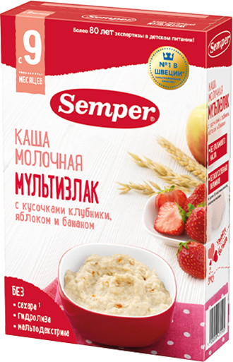 Semper Каша Semper (Сэмпер) молочная Мультизлак с кусочками клубники, яблоком и бананом, 180 г