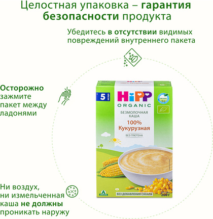 Безмолочная каша "Кукурузная" HiРР - состоит из ценных органических злаков, которые легко усваиваются.