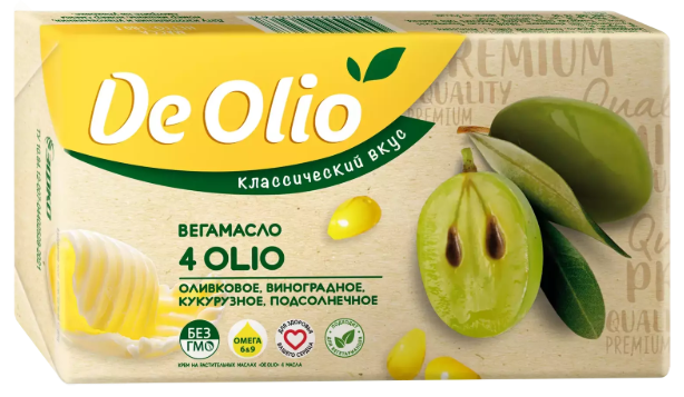 Вега-масло De Olio - полезная растительная альтернатива сливочному маслу, которая обладает всеми функциональными и органолептическими характеристиками сливочного масла. De Olio - идеальный выбор для тех, кто придерживается растительной диеты и заботится о своем здоровье. Подходит для постного меню.