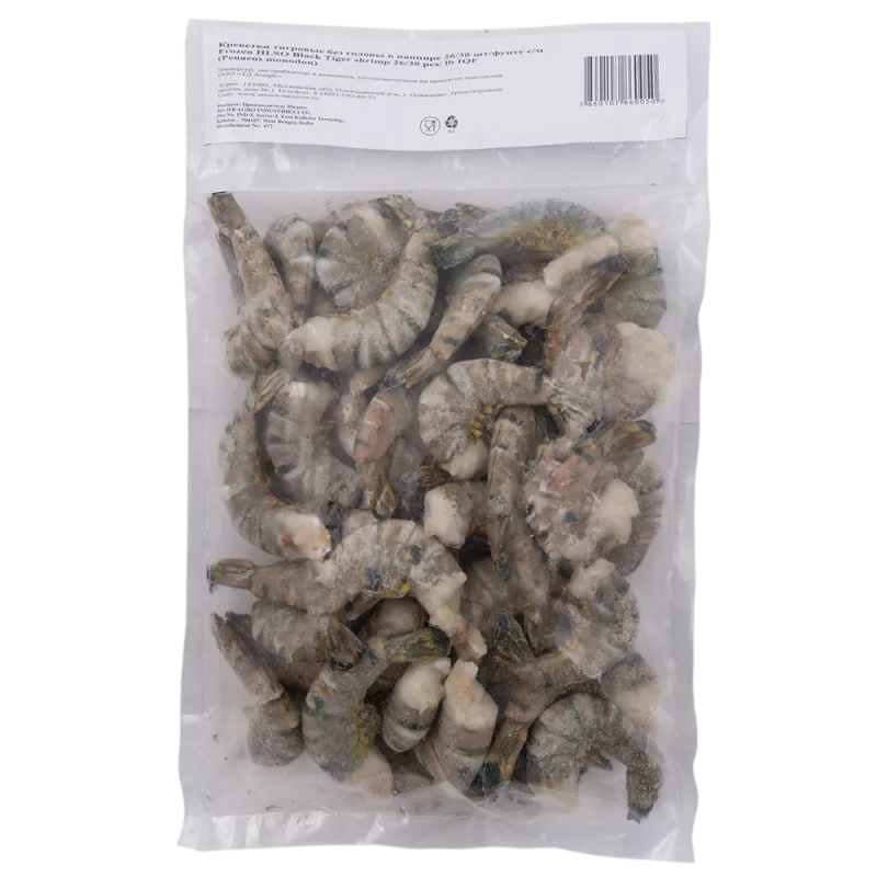 Креветки ваннамей с/м, б/головы в панцире, б/ вены easy peel 26/30, 1 кг