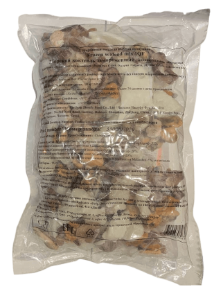 Морской коктейль из 5 компонентов: мидий, щупальцев и полосок кальмаров, креветок, осьминогов, пойманных в западной центральной части Тихого океана. Морской коктейль замороженный, с защитной глазуью. Перед употреблением необходимо отварить.