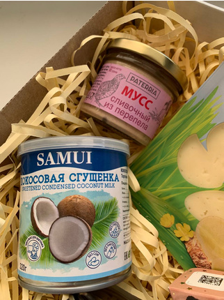 Разнообразие кухонь и вкусов собралось в этом подарочном наборе. Кокосовая сгущенка из Таиланда, перчики черри с мягким сыром из Турции и многие другие интересные продукты.
