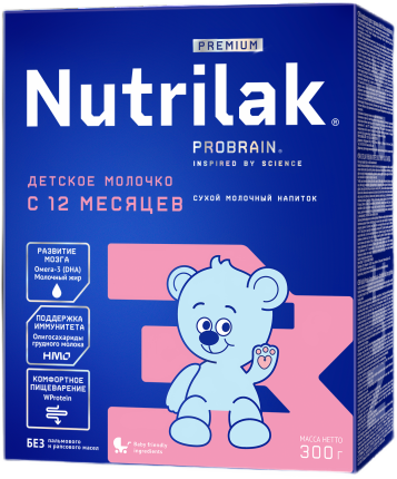 Детский молочный напиток Nutrilak Premium 3 Детское молочко имеет оптимально сбалансированный состав и дополняет рацион ребенка старше одного года важнейшими питательными веществами, необходимыми микронутриентами для поддержания активного роста, когнитивного развития и укрепления иммунитета.