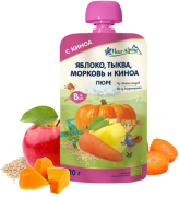Пюре из свежих плодов яблок и бананов с добавлением натурального йогурта и цельных злаков идеально подходит для сытного завтрака или полдника. А удобная упаковка позволяет взять пюре с собой в дорогу или на прогулку.