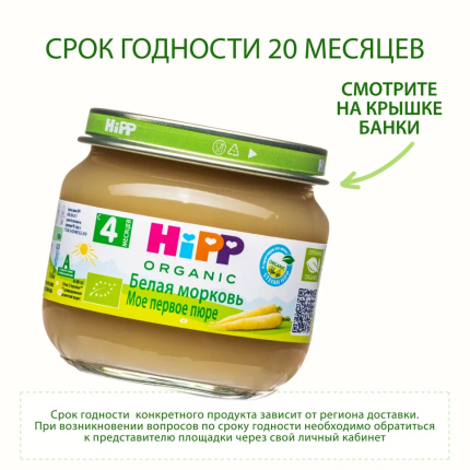 Пюре HiPP "Белая морковь" - уникальный для детского питания продукт! Белая морковь - это редкий вид, который происходит от дикой моркови. У белой моркови мягкий сладковатый вкус, поэтому переход от молока к овощному прикорму будет мягким и легким. Белая морковь богата минералами, клетчаткой и витаминами B и C.