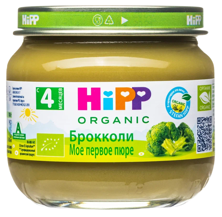 Пюре HiPP "Брокколи" обладает нежной консистенцией и приятным вкусом, который очень нравится малышам. Брокколи - низкоаллергенный продукт, является источником калия, кальция, фолиевой кислоты, клетчатки, а также витамина С и железа. Эти витамины и микроэлементы играют важную роль для развития иммунной системы и кровообращения. Отлично подходит для детского питания с 4 месяцев.