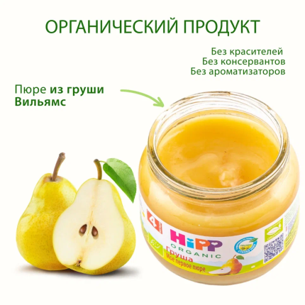 Пюре "Груша" HiРР состоит из 100% органических фруктов.