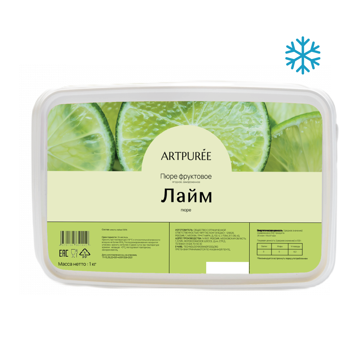 Artpuree Пюре Лайм замороженное (без сахара), 1 кг
