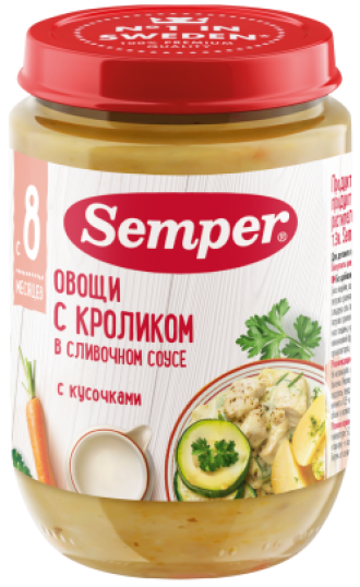 Semper Пюре Semper (Сэмпер) Овощи с кроликом в сливочном соусе, 190 г