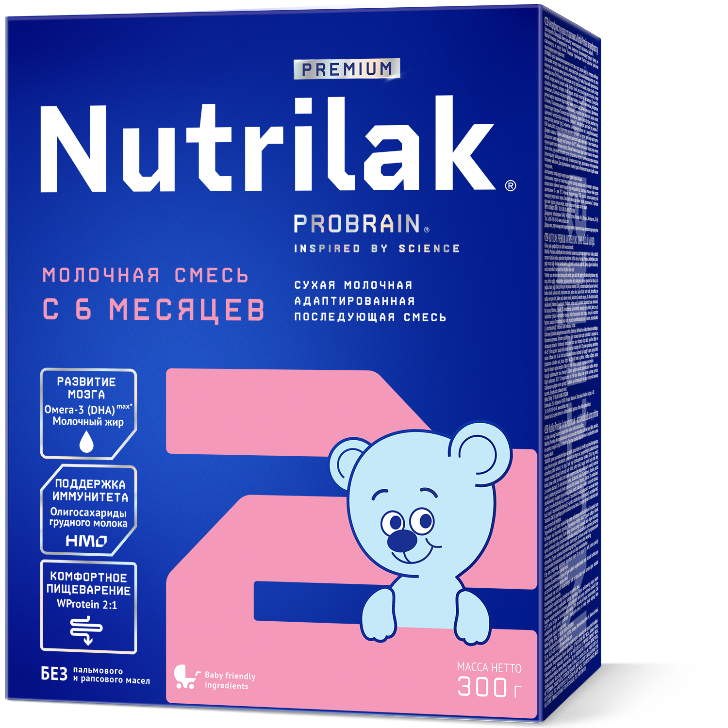 Сухая деминерализованная молочная сыворотка, мальтодекстрин, растительные масла (подсолнечное высокоолеиновое, соевое, кокосовое), сухое цельное молоко, сухое обезжиренное молоко, концентрат белков молочной сыворотки, минеральные вещества (калия цитрат, кальция карбонат, кальция фосфат (кальциевые соли ортофосфорной кислоты), натрия хлорид, магния хлорид, калия хлорид, железа (II) сульфат, цинка сульфат, меди сульфат, марганца хлорид, йодид калия, селенит натрия), молочный жир, рыбий жир (источник докозагексаеновой кислоты DHA ), витаминный комплекс ( L -аскорбиновая кислота, DL -альфа-токоферола ацетат, никотинамид, D - пантотенат кальция, рибофлавин, ретинола ацетат, пиридоксин гидрохлорид, тиамина гидрохлорид, фолиевая кислота, филлохинон, D - биотин, D3 холекальциферол, цианкобаламин), олигосахарид 2’-фукозиллактоза, холина битартрат, инозит, таурин, эмульгатор (соевый лецитин), нуклеотиды (цитидин-5’-монофосфорная кислота, уридин-5’- монофосфат динатриевая соль, аденозин-5’-монофосфорная кислота, гуанозин-5’-монофосфат динатриевая соль, инозин-5’-монофосфат динатриевая соль), масло Mortierella Alpina (источник арахидоновой кислоты ARA ), L - карнитин, антиокислитель (L-аскорбилпальмитат), лютеин. Не содержит ГМО!