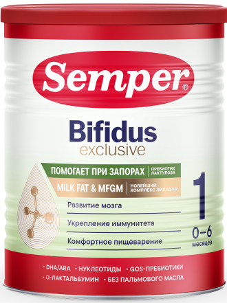 Semper Bifidus 1 Exclusive - адаптированная молочная смесь со специальным компонентом для борьбы с запорами у малышей - пребиотиком лактулозой: