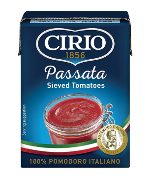 Благодаря уникальному опыту и мастерству CIRIO создана лучшая итальянская пассата. Её идеально гладкая, бархатистая текстура и нежный сладковатый вкус достигаются благодаря бережной обработке: отборные круглые помидоры бланшируются, очищаются от кожуры и пропускаются через мелкое сито, что обеспечивает гладкую текстуру и незабываемый вкус соуса. Пассата CIRIO — идеальное дополнение к кремовым супам и томатным соусам: достаточно добавить любимые травы и специи.