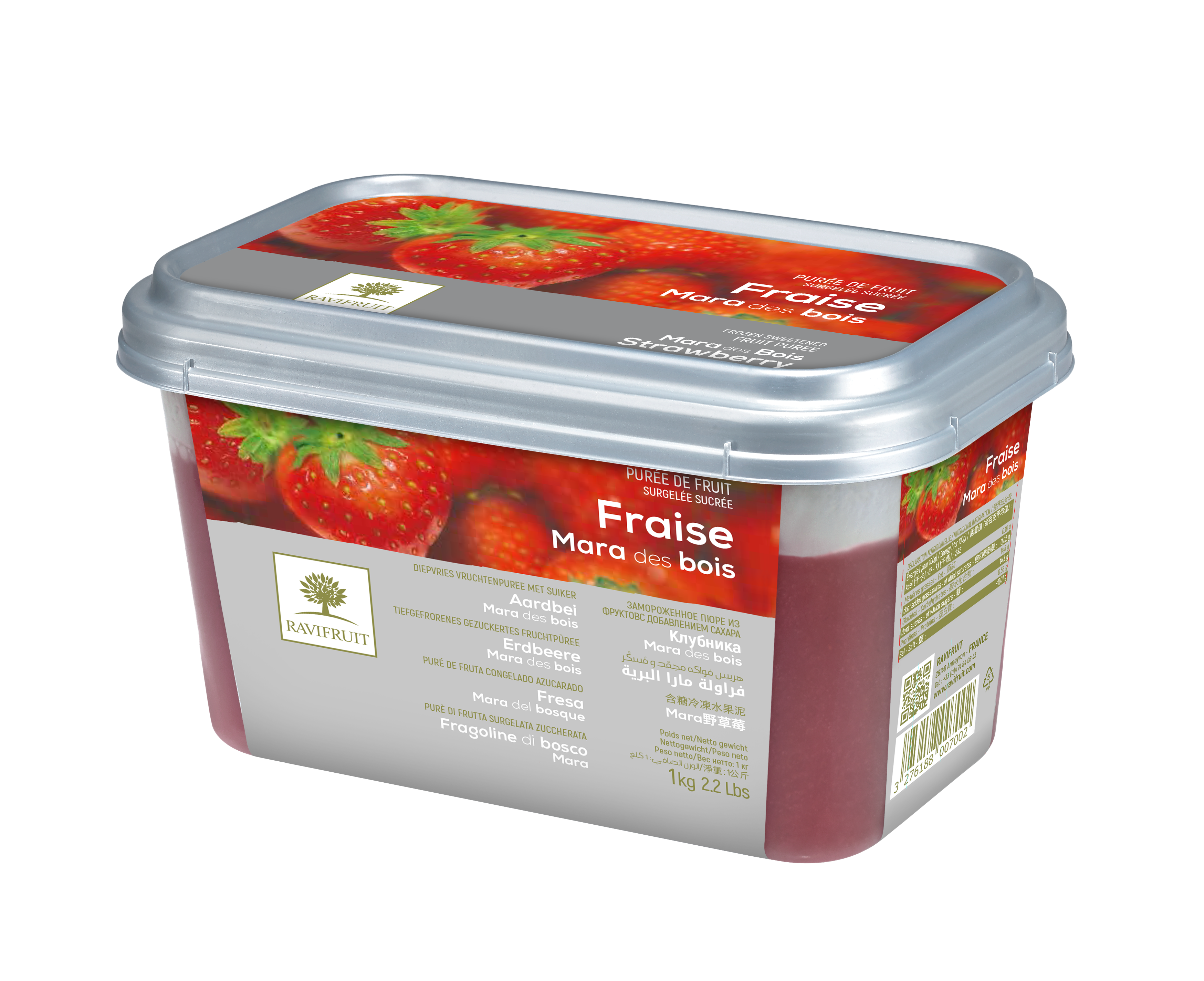 Ravifruit Замороженное пюре из фруктов с добавлением сахара Клубника, 1 кг