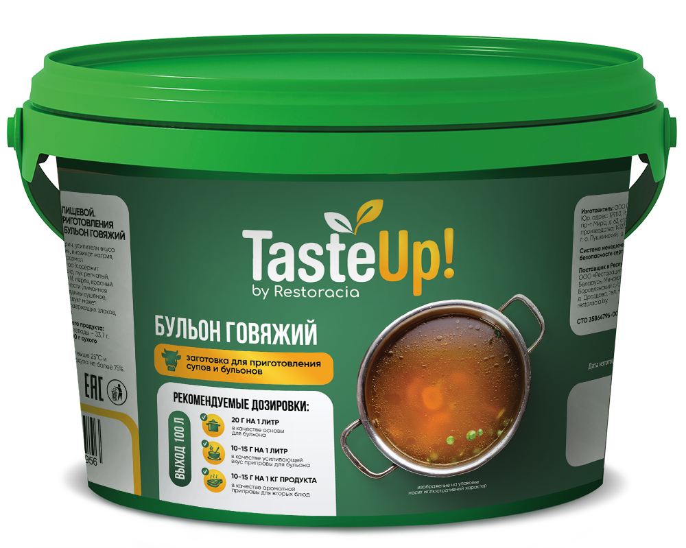 Говяжий бульон TasteUp! – идеальная основа для супов и прекрасная приправа ко вторым блюдам, добавляющая им глубокий, насыщенный вкус настоящего говяжьего бульона.