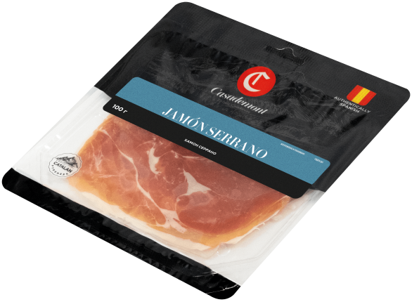Традиционный испанский сыровяленый продукт из свиней белой породы, который высоко ценится гурманами по всему миру. Секрет Хамона Серрано Casademont заключается в тщательном отборе окороков и уникальном процессе вяления (не менее 7 месяцев), в результате которого создается исключительный продукт.