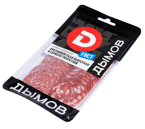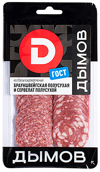 Дымов Колбасы ассорти Брауншвейгская полусухая + Сервелат сырокопченые полусухие, 90 г