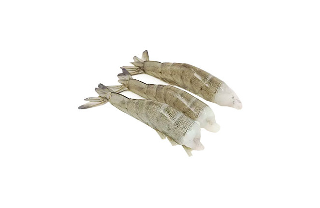 Креветка без головы в панцире мороженая.