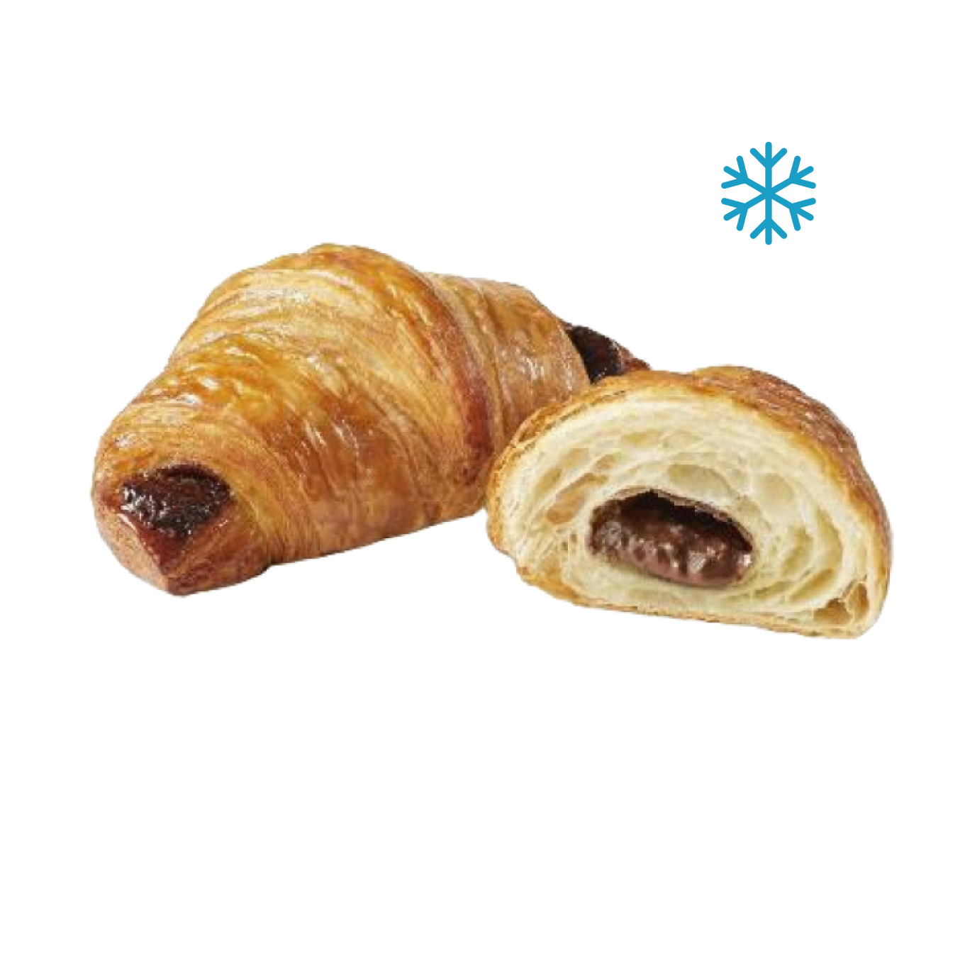 Круассан на чистом сливочном масле с мягкой начинкой из какао-ореховой пасты. Приготовление: Разморозить при комнатной температуре. Выпекать в духовке 17-18 минут при температуре 165 – 170 ºС.