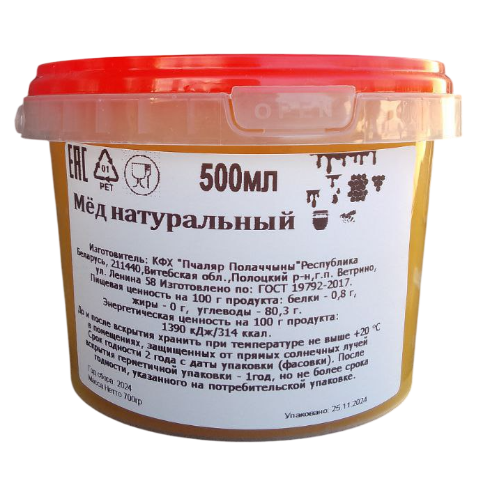 Мед пчелиный фасованный, 500 мл (700 г)