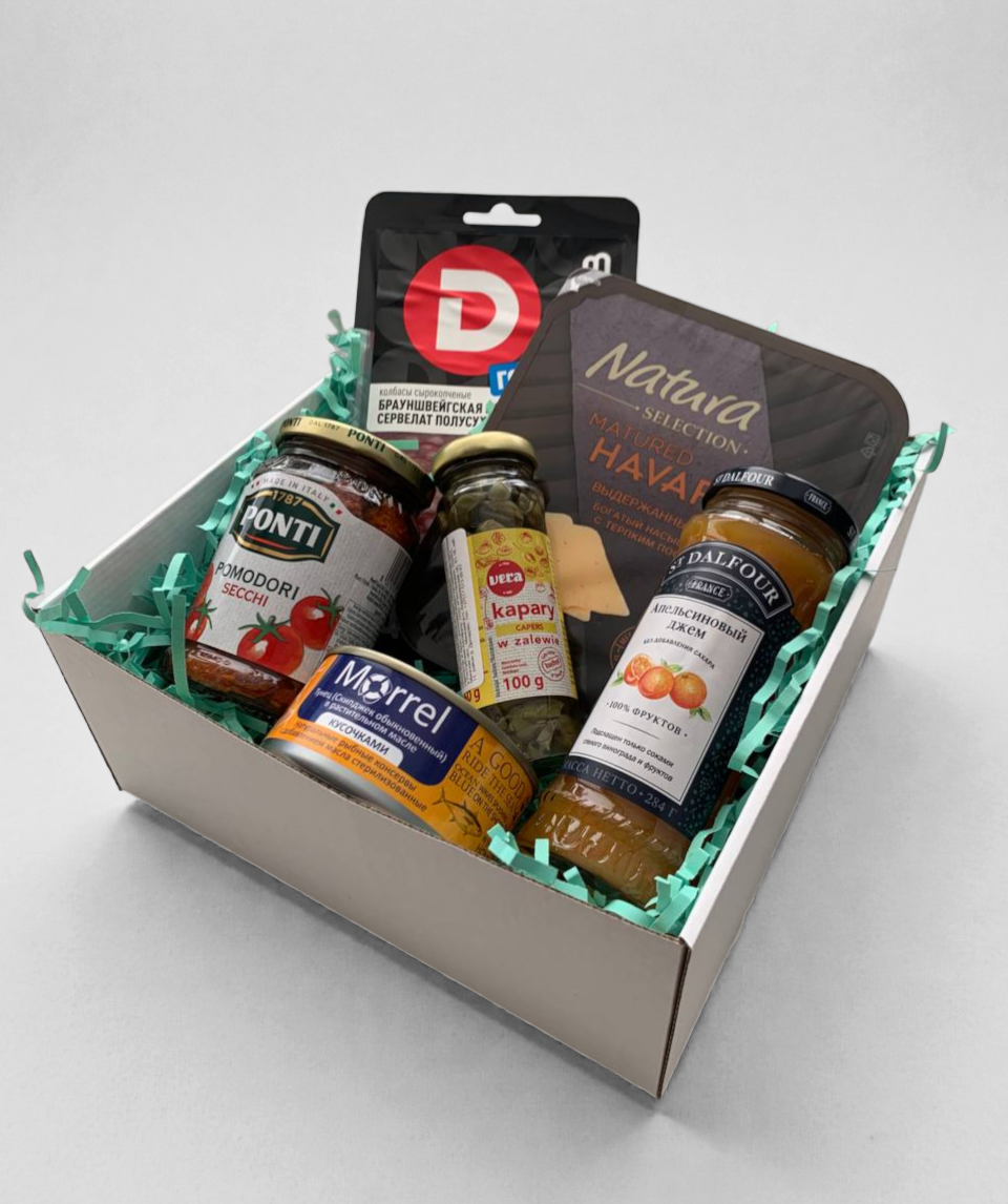 Подарочный набор с нотками средиземноморской кухни: каперсы, маслины и другие продукты, которые добавят шарм любому блюду.