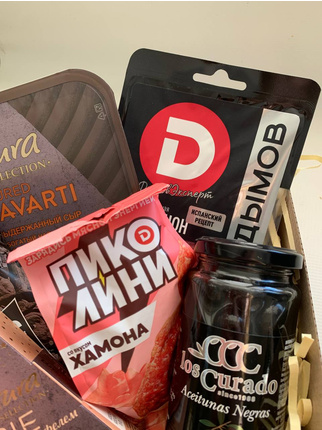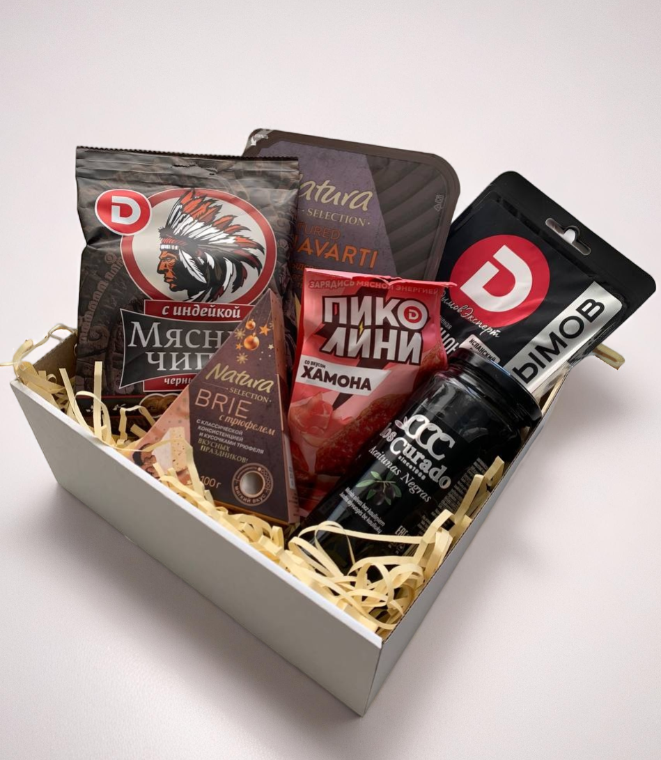 Набор состоит из продуктов, которые могут послужить как сытным и полезным перекусом, так и дополнением к праздничному столу. Именно поэтому набор подойдет как подарок к любой встрече.