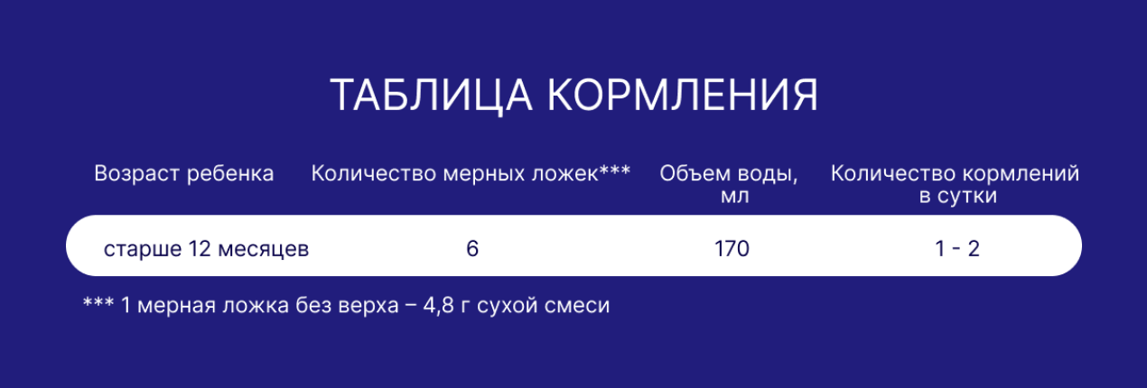 Cухая деминерализованная молочная сыворотка, сухое цельное молоко, мальтодекстрин, растительные масла (подсолнечное высокоолеиновое, соевое, кокосовое), сухое обезжиренное молоко, минеральные вещества (кальция фосфат (кальциевые соли ортофосфорной кислоты), калия цитрат, кальция карбонат, магния хлорид, натрия цитрат, натрия хлорид, железа (II) сульфат, цинка сульфат, меди сульфат, марганца хлорид, йодид калия, селенит натрия), витаминный комплекс (L-аскорбиновая кислота, DL-альфа-токоферола ацетат, никотинамид, D-пантотенат кальция, рибофлавин, ретинола ацетат, пиридоксин гидрохлорид, тиамина гидрохлорид, фолиевая кислота, филлохинон, D-биотин, D3 холекальциферол, цианкобаламин), олигосахарид 2’-фукозиллактоза (2’FL), рыбий жир (источник докозагексаеновой кислоты DHA), таурин, инозит, эмульгатор (соевый лецитин), антиокислитель (L-аскорбилпальмитат). Не содержит ГМО.