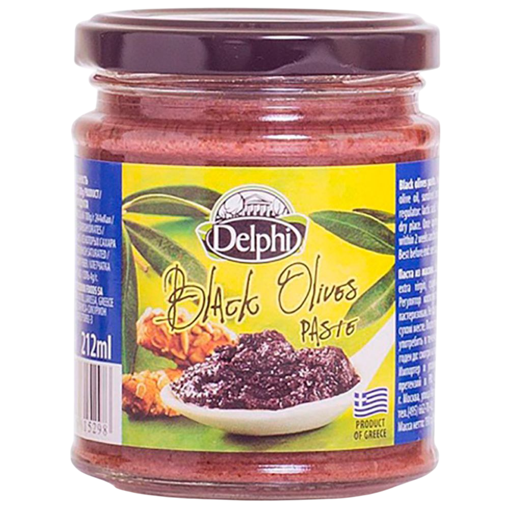 Маслины без косточки (90%), оливковое масло Extra Virgin (3%), сушеные томаты (2,4%), уксус (2%), соль (2%), орегано (0,2%), чеснок, черный перец, регулятор кислотности: молочная кислота