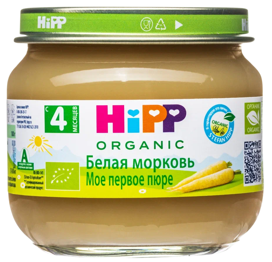 Пюре HiPP "Белая морковь" - уникальный для детского питания продукт! Белая морковь - это редкий вид, который происходит от дикой моркови. У белой моркови мягкий сладковатый вкус, поэтому переход от молока к овощному прикорму будет мягким и легким. Белая морковь богата минералами, клетчаткой и витаминами B и C.