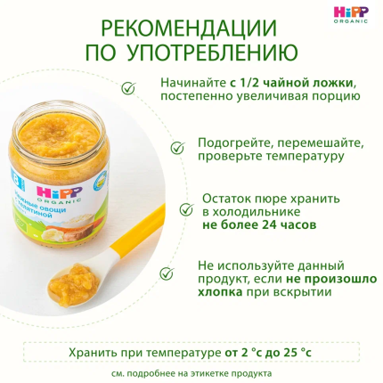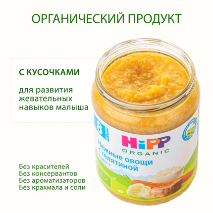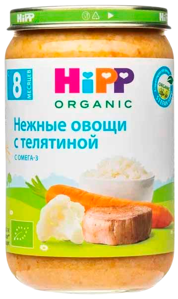 HiPP Пюре HiPP (Хипп) Нежные овощи с телятиной, 190 г