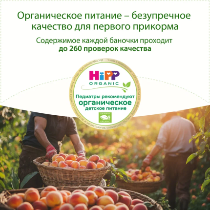 Органический персик обладает сочной мякотью, из которой получается пюре HiPP с приятным и насыщенным вкусом. Кроме того, персик является ценным источником растворимой клетчатки, регулирующей и улучшающей деятельность кишечника.