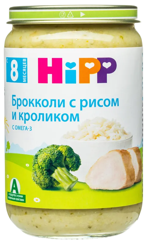 HiPP Пюре HiPP (Хипп) Пюре Брокколи с рисом и кроликом, 190 г