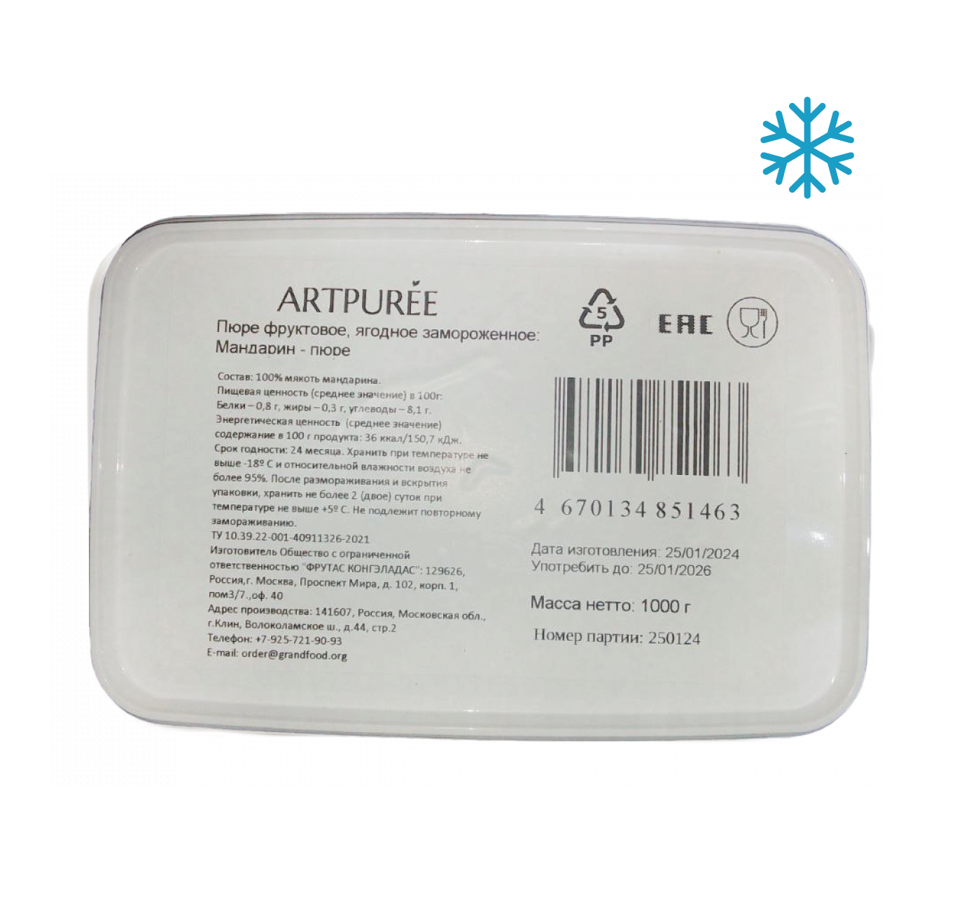 Artpuree Пюре Мандарин замороженное (без сахара), 1 кг