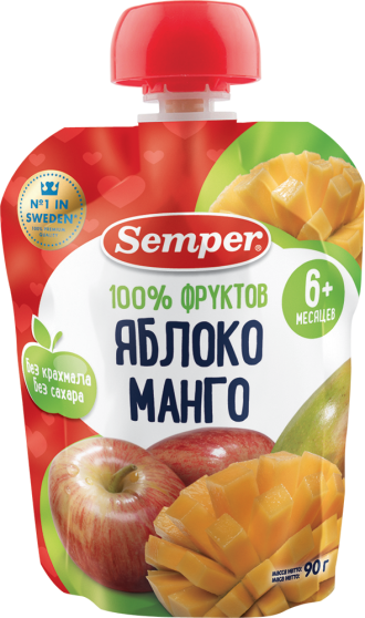 Пюре яблоко манго Semper не содержит искусственных красителей, ароматизаторов, консервантов и ГМО. Произведено без добавления сахара и крахмала. Подходит для детского питания с 6 месяцев. Яблоко — кладовая витаминов и минералов, оно также способствует улучшению пищеварения и отвечает за хорошее самочувствие.