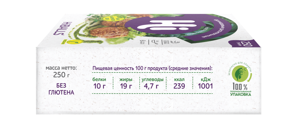 вода, текстурированный растительный белок (соевый, гороховый, рисовый), рафинированные дезодорированные растительные масла (рапсовое, кокосовое, подсолнечное), лук сушеный, соль пищевая, ароматизатор натуральный, растительные волокна, глюкозы, перец черный молотый, чеснок молотый, красители: Е 162 (концентрат сухой свекольный), Е150а ((карамельный колер), антиокислитель – лимонная кислота, витамин D3, витамин B12