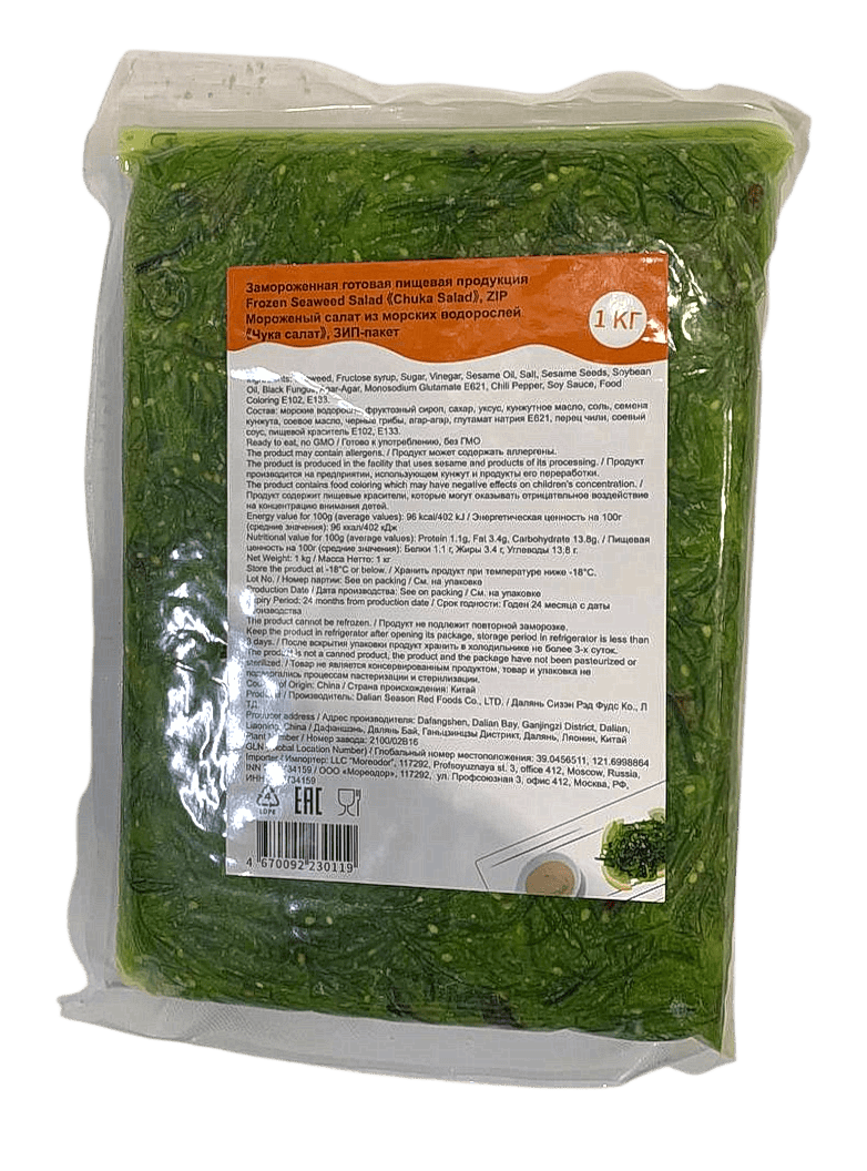 Морские водоросли, фруктозный сироп, сахар, уксус, кунжутное масло, соль, семена кунжута, соевое масло, черные грибы, агар-агар, глутамат натрия Е621, перец чили, соевый соус, пищевой краситель Е102, Е133. Продукция может содержать краситель, который может оказывать отрицательное влияние на активность и внимание детей.