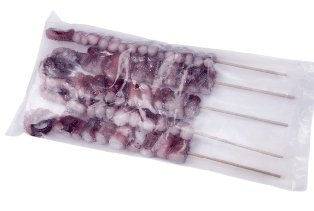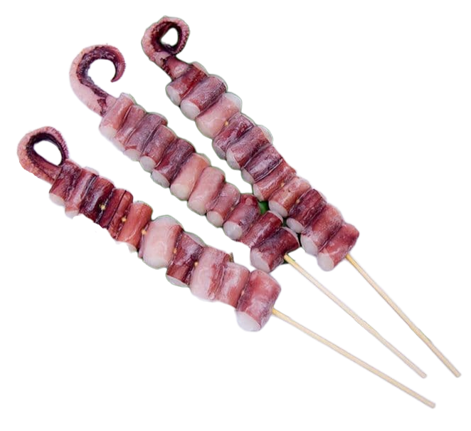 Щупальца гигантского кальмара очищенные представлены на шпажке, что гораздо облегчает процесс приготовления.