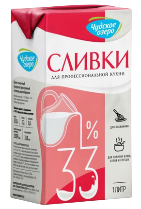 Чудское озеро Сливки для взбивания 33% крем сливочный, 1 л