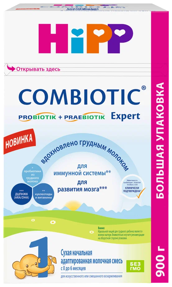 Детская молочная смесь Нipp 1 combiotic expert c лактобактериями сухая c 0 месяцев – это идеальное питание для новорожденных, если кормление грудью по каким-либо причинам невозможно. Сухая начальная адаптированная молочная смесь HiPP 1 Combiotic Expert содержит: пробиотики грудного молока - живые лактобактерии l.fermentum, выделенные из грудного молока, и пребиотические пищевые волокна (галактоолигосахариды GOS), подобные содержащимся в грудном молоке. Клинически доказано, что такое сочетание: способствует формированию естественного иммунитета ребенка и здоровой кишечной микрофлоры, усиливает защитные функции кишечника, обеспечивает комфортное пищеварение (профилактика младенческих колик и запоров). Детская молочная смесь HIPP 1 Combiotic Expert с лактобактериями обеспечивает все необходимое для здорового роста и развития маленького организма.