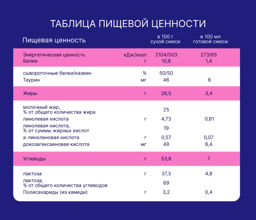 Смесь содержит важные компоненты для полноценного развития: