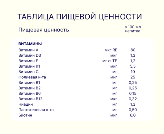 Сбалансированный состав продукта (белок, 29 витаминов и минералов, омега-3, омега-6 жирные кислоты, пребиотики) поможет восполнить нутриенты, которые ребенок не получил во время еды.