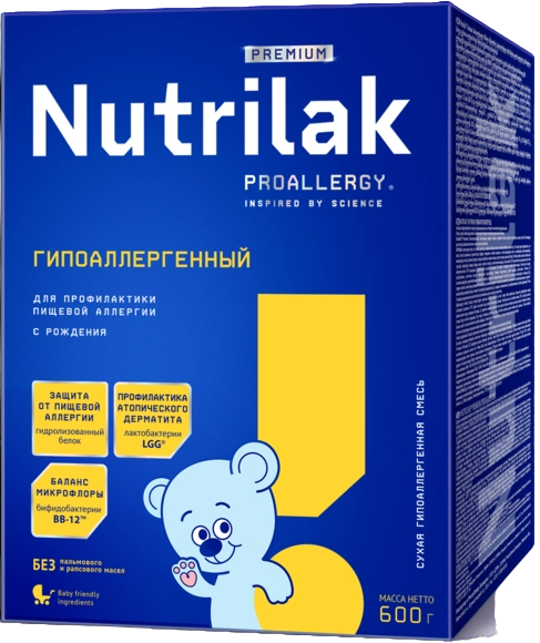 Nutrilak Premium Гипоаллергенный предназначен для диетического профилактического питания детей из групп риска по развитию пищевой аллергии с первых дней жизни.