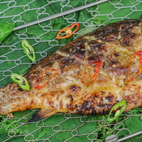 Обжарить рыбу на углях, примерно по 7 минут с каждой стороны.