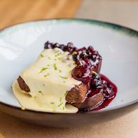 Гренки с кремом сабайон и ягодным соусом