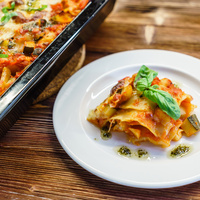 Лазанья с овощами и курицей